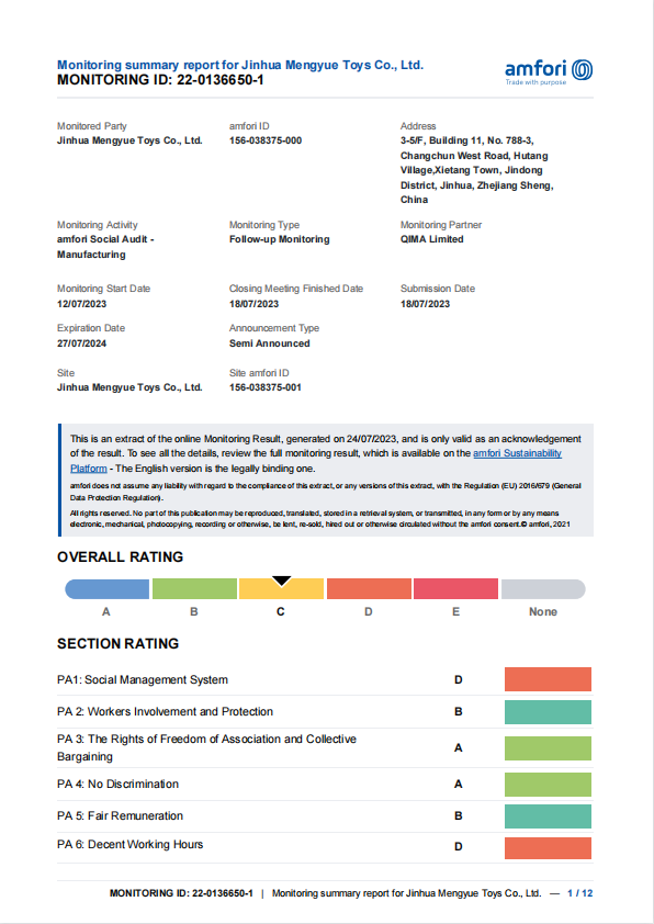 Third party factory inspection report